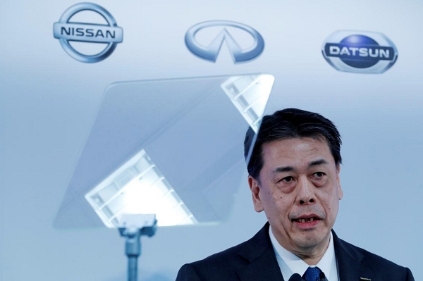 일본 요코하마(横浜)시내 본사에서 기자회견하는 우치다 마코토 닛산 CEO. 사진=로이터