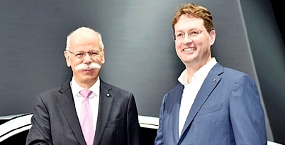 (왼쪽부터) 제체 전 회장과 칼레니우스 현 회장. 사진-다임러그룹
