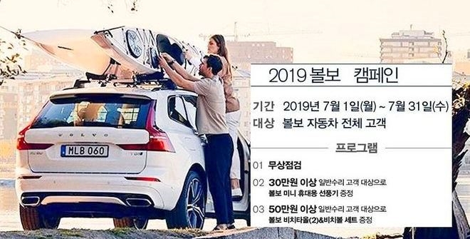 볼보코리아는 행사 기간 유상 수리로 30만원 이상 결제한 고객에게 볼보 휴대용 선풍기를, 50만원 이상일 경우 볼보 비치타월과 비치볼 세트를 각각 지급한다.