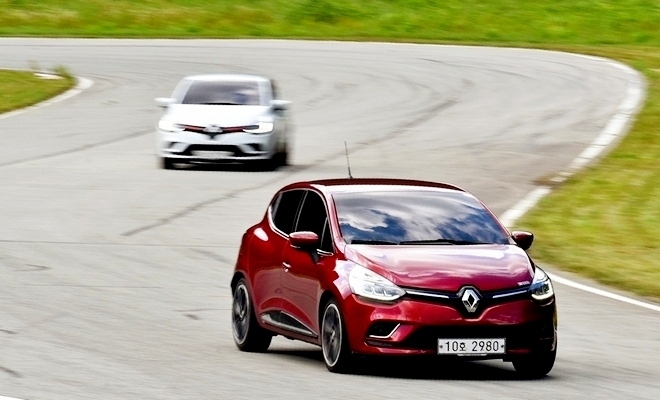 이미지 확대보기르노삼성이 마련한 장거리 시승행사에 참여한 기자들이 클리오를 타고 태백 서킷을 질주하고 있다. 사진=글로벌 이코노믹 정수남 기자