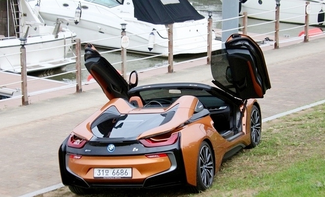 이미지 확대보기소프트탑 컨버터블 (위부터)BMW i8로드스터와 Z4. i8로드스터는 1.5 가솔린 엔진과 전기모터를 가진 하이브리드로, 정지 상태에서 시속 100㎞(제로백) 도달시간 4.6초, 최고 속도는 250㎞k로 제한됐다. 차량 가격은 2억1970만원이다. 2.0 가솔린 엔진을 지닌 Z4 20i sDrive의 제로백은 6.6초이며, 역시 250㎞로 속도가 제한됐다. 가격은 6520만원에서 6710만원이다. 사진=글로벌 이코노믹 정수남 기자