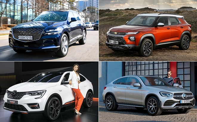 (왼쪽 상단부터 시계 방향) 제네시스 'GV80', 쉐보레 '트레일블레이저', 메르세데스-벤츠 'GLC300 쿠페', 르노삼성차 'XM3'. 사진=제조사별이미지 확대보기