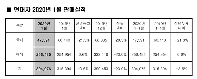 현대차는 지난달 내수 4만7591대, 수출 25만6485대 등 전 세계 시장에서 총 30만4076대를 판매했다고 3일 밝혔다.