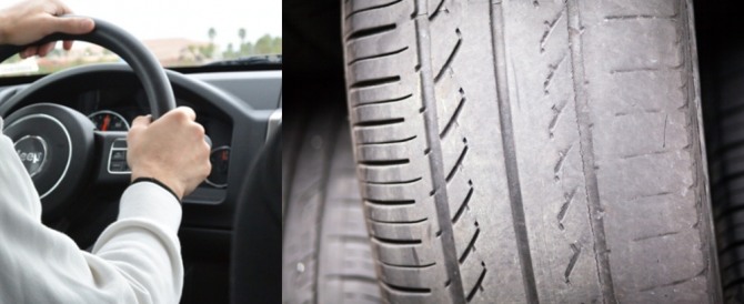 운전 시 핸들 떨림(왼쪽)과 편마모 된 타이어.