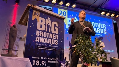 이미지 확대보기독일 노르트라인베스트팔렌주 빌레펠트에서 지난 18일(현지시간) 열린 2020년도 빅브라더 어워드 행사 장면. 사진=디지털커리지협회
