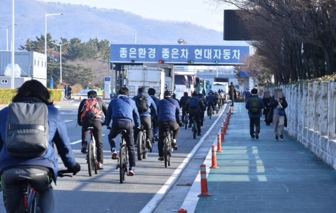 이미지 확대보기현대자동차 울산공장 직원들이 지난 1월 울산 북구 현대차 명촌 정문으로 출근하고 있다. 사진=뉴시스 현대자동차와 기아 등 완성차업계에 자동차용 반도체 공급부족의 암운(暗雲)이 드리우고 있다.