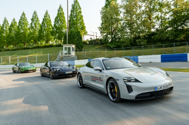 이미지 확대보기포르쉐코리아가 지난 18일 경기도 용인 스피드웨이에서 '포르쉐월드로드쇼 2022'를 개최했다. 앞쪽에서부터 타이칸 GTS, 타이칸 터보S, 타이칸 터보 순. 사진=포르쉐코리아