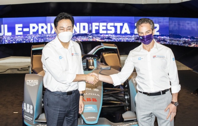 포뮬러E 코리아는 12일 서울 동대문디자인플라자(DDP)에서 '2022 서울페스타 & 서울 E-프리' 개최 계획을 발표했다. 이날 자리에는 오세훈 서울시장과 제이미 리글 포뮬러E 최고경영자(CEO)가 참석했다.