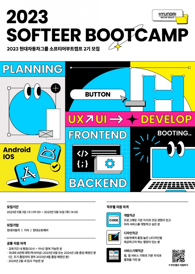 이미지 확대보기2023 현대자동차그룹 소프티어부트캠프 2기 모집 공고 포스터 사진=현대자동차그룹
