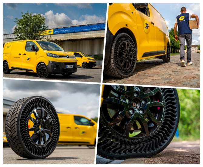 펑크가 나지 않는 미쉐린 에어리스 타이어가 프랑스 ‘라 포스트’ 배송 차량에 도입됐다. 유럽 지역에서는 처음이다.