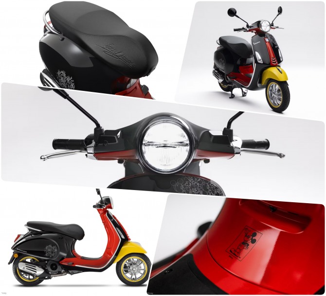 베스파 디즈니 미키 마우스 에디션은 베스파의 스테디셀러인 프리마베라에 디즈니 대표 캐릭터 미키 마우스를 모티브로 디자인됐다. 노란색으로 꾸민 앞바퀴 휀더는 미키 마우스의 신발을 연상시키며, 검은색 리어뷰 미러는 미키 마우스의 둥근 귀에서 영감을 얻었다고 한다. 여기에 캐릭터 실루엣을 나타내는 그래픽 패턴을 적용해 스쿠터의 양쪽과 앞을 장식했으며, 미키 마우스 네이밍 레터를 안장과 전면 쉘 양쪽에 적용했다. 프리마베라는 1968년 탄생된 베스파 대표 모델이다.