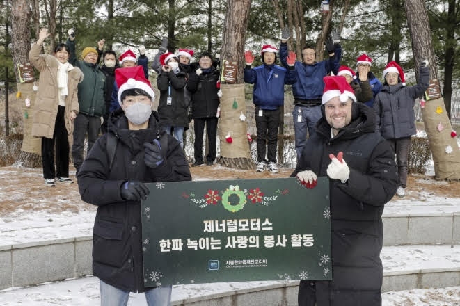 한국지엠이 임직원들이 한파 속 겨울나무 옷 입히기, 제설함 설치, 스레기 수거 등 사랑 나눔 봉사 활동에 한창이다.