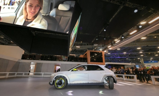 현대모비스가 미국 라스베이거스에서 9일(현지 시각)부터 12일까지 열리는 세계 최대 IT 전시회인 CES 2024에서 차세대 전기차 구동 기술인 e코너시스템이 장착된 실증차 '모비온(MOBION)'을 처음으로 공개했다.