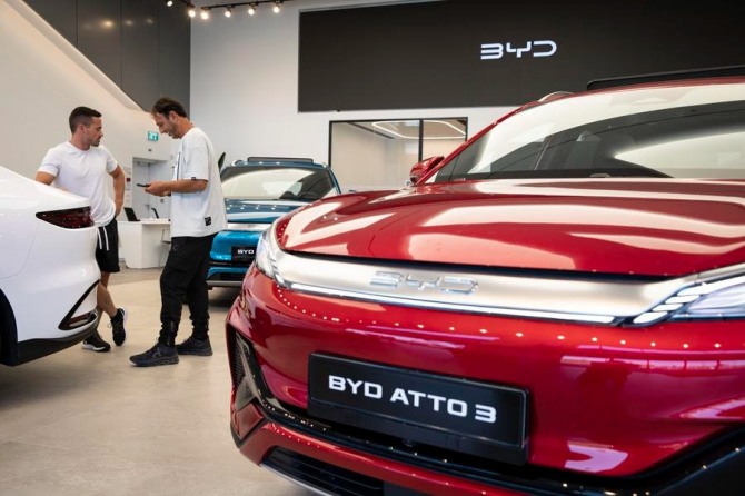 이미지 확대보기아토3는 지난해 이스라엘에서 전기차 판매 1위를 차지했다. 이스라엘 텔아비브 비야디(BYD) 매장에 스포츠유틸리티차량(SUV) 전기차 '아토 3'가 전시돼 있다. 사진=뉴시스