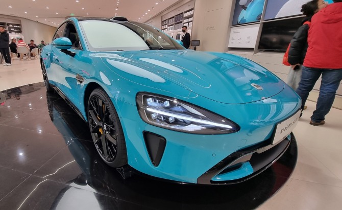 이미지 확대보기중국 베이징 둥청구 왕푸징 거리에 있는 샤오미의 첫 전기차 SU7(Speed Ultra 7·중국명 수치) 판매장에서 방문객들이 차량을 살펴보고 있다. 사진=뉴시스