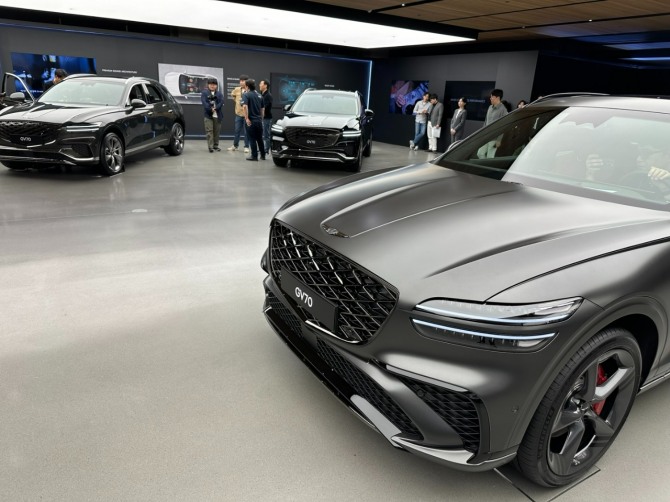 이미지 확대보기지난 17일 제네시스 수지에 전시된 제네시스 GV70 신형, 사진=육동윤 글로벌이코노믹 기자