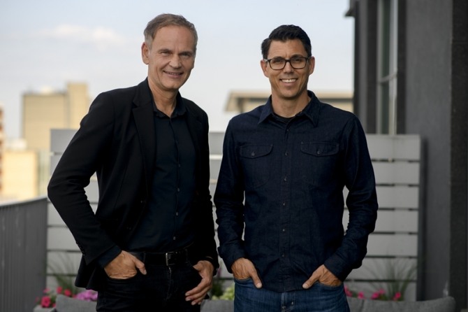 올리버 블루메 폭스바겐 그룹 CEO(왼쪽)과 R J 스카링 리비안 CEO. 사진=리비안