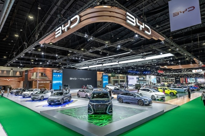 이미지 확대보기BYD가 45회 방콕 국제 모터쇼에서 선보인 종합 브랜드 라인업. 사진=BYD