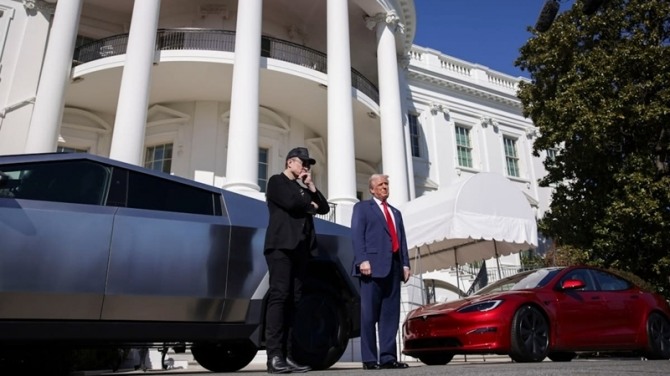 이미지 확대보기도널드 트럼프 미국 대통령이 백악관에서 테슬라 모델 S를 구매하고 있다. 출처=백악관 X