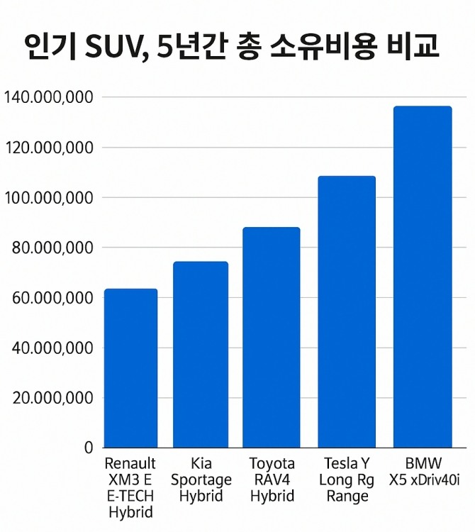이미지 확대보기인기 SUV 5년간 총 소유비용 그래프 자료 정리=인공지능 서비스단위:KRW