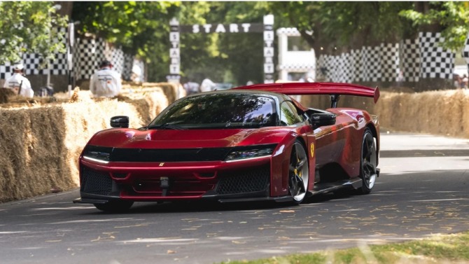 첫 번째는 페라리의 새로운 하이퍼카 F80이다. 페라리의 80주년을 기념해 제작된 이 모델은 3.0리터 트윈터보 V6 엔진과 세 개의 전기모터가 결합된 하이브리드 시스템을 바탕으로 무려 1200마력에 달하는 출력을 발휘한다. 정지 상태에서 시속 100km까지 도달하는 데는 단 2.15초면 충분하고, 최고속도는 350km/h에 이른다. F1 기술과 르망 499P에서 얻은 노하우가 반영된 이 모델은 액티브 공력 시스템과 부스트 최적화 장치를 갖추고 있으며, 굿우드의 힐클라임 코스에서도 압도적인 퍼포먼스를 선보였다. 전 세계 799대 한정 생산되며, 한 대당 가격은 약 3.9백만 유로(한화 약 60억 원)에 달한다.