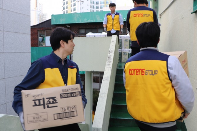 이미지 확대보기코렌스 임직원들이 지난 29일 경남 양산에 위치한 아동복지시설 애육원에서 봉사활동을 하고 있다. 사진=코렌스