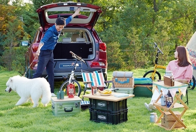코란도 1.5 가솔린이 가족 SUV로 인기를 끌고 있다. 한 2인 가족이 코란도를  타고 소풍을 나왔다. 사진=쌍용차이미지 확대보기