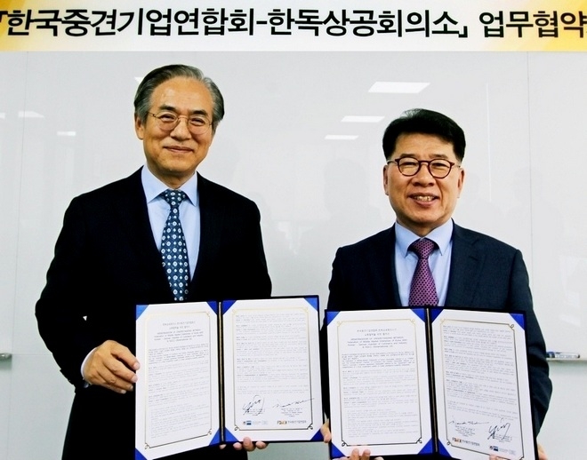 김효준 한독상의 회장, 중견련과 MOU…히든챔피언 육성에 맞손