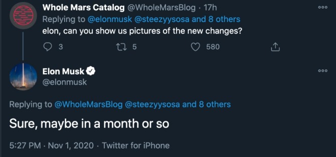 2일(현지시간) 전기차 전문매체 테슬라라티에 따르면 일론 머스크 테슬라 최고경영자(CEO)는 전날 올린 트윗에서 사이버트럭의 디자인이 변경되는지 궁금하다는 테슬라 마니아의 질문에 “소폭의 개선 작업을 진행 중”이라면서 “앞으로 한달 정도 안에 변경된 디자인을 공개할 계획”이라고 밝혔다.