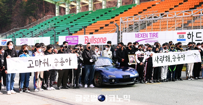 이날 오후 클래스별 마지막 결승 경기를 앞두고 진행된 추모식은 넥센스피드레이싱 참가 드라이버들과 관계자들이 윤승용 선수의 영정사진과 함께 차량에 탑승해 서킷을 달렸다.
