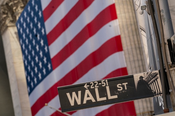월스트리트에 내걸린 성조기. 사진=뉴시스