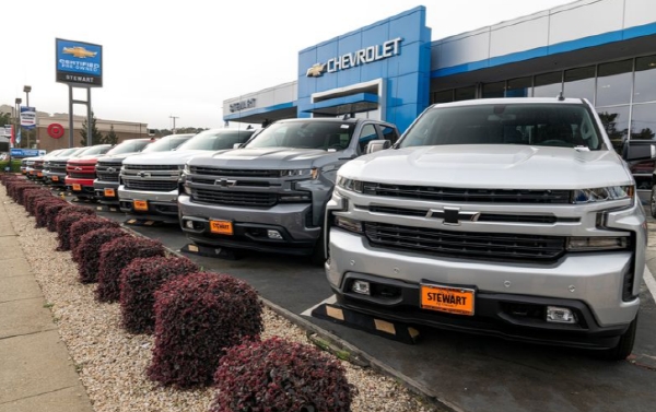 이미지 확대보기미국 캘리포니아주 콜마의 판매대리점에 전시된 GM 픽업트럭 시보레 실버라도 차량. 사진=로이터