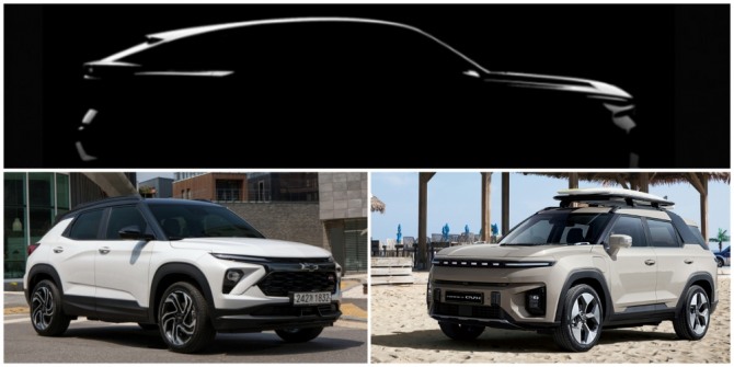 이미지 확대보기(위부터 시계방향) 오로라 프로젝트 예상 티저 이미지, 토레스 EVX, 쉐보레 트랙스 크로스오버 사진=각사