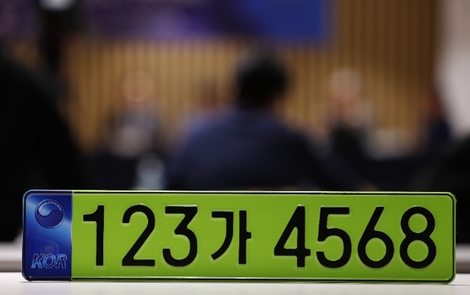 연두색 법인 승용차 번호판. 사진=연합뉴스이미지 확대보기