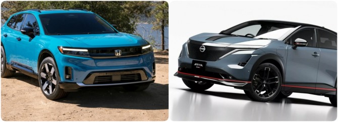 이미지 확대보기혼다의 순수전기차 프롤로그(왼쪽), 닛산의 순수전기차 아리야(오른쪽) 사진=각사