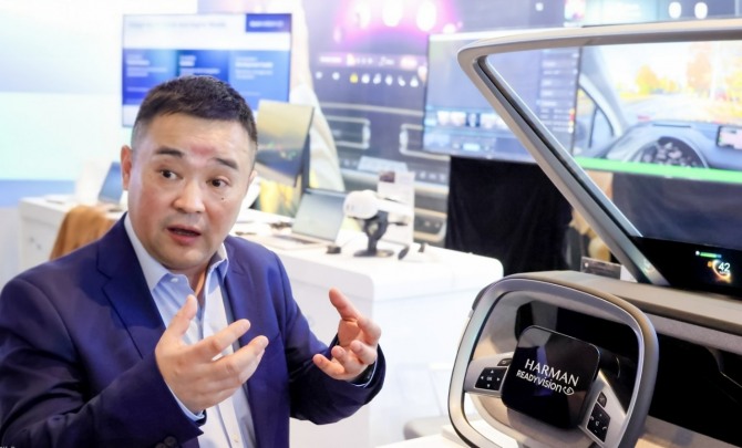 제리 리(Jerry Li), 하만 오토모티브 인텔리전트 콕핏 개발 담당 상무가 레디비전 제품을 한국자동차전문기자협회 기자단에 설명하고 있다. 사진=하만이미지 확대보기