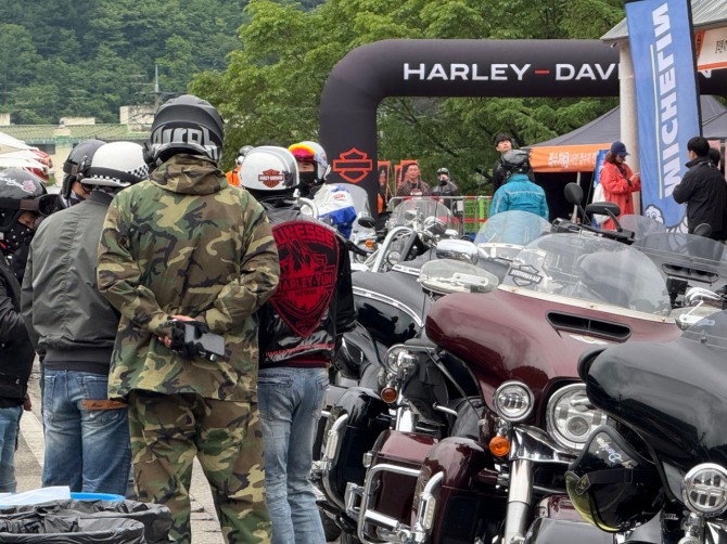 이미지 확대보기할리데이비슨 호그 랠리 이벤트에서 참가자들이 삼삼오오 모여있다. 사진=육동윤 글로벌이코노믹 기자