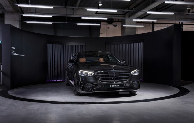 이미지 확대보기지난달 출시하고 19일까지 스튜디오 블랙에서 전시되는 한정판 나이트 에디션 S 490 4MATIC 사진=메르세데스-벤츠코리아