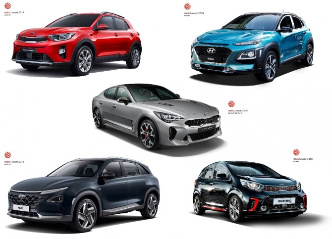 이번 2018 레드닷 디자인상 ‘제품 디자인(product design) 부문-수송 디자인(transportation design) 분야’에서 ▲기아차 스팅어가 최우수상(Best of Best)을 수상했으며 ▲현대차 넥쏘와 ▲코나 ▲기아차 스토닉과 ▲모닝이 본상(Winner)을 수상했다.