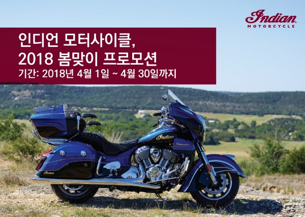 인디언 모터사이클이 4월 한 달 동안 차량 취·등록세 지원과 무이자 리스 혜택 등의 프로모션을 진행한다.