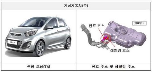 이번 리콜에 대해 국토교통부는 모닝(TA)과 레이(TAM) 등 2개 차종 19만562대의 연료 호스와 레벨링 호스 재질 결함으로 화재 발생 가능성 때문인 것으로 알려졌다.