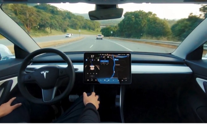 이미지 확대보기FSD 베타 버전을 작동시킨 상태에서 주행 중인 테슬라 전기차. 사진=테슬라