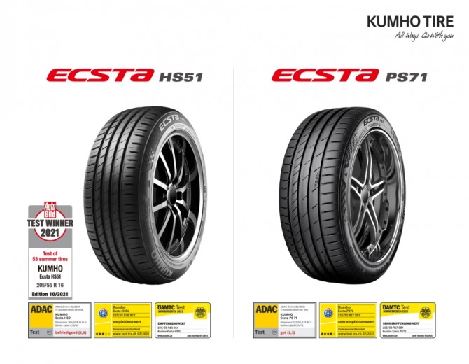 최근 아우토 빌트는 유럽지역에서 판매중인 주요 브랜드의 여름용 타이어 53개 제품을 대상으로 1차로 마른(Dry) 노면과 젖은(Wet) 노면에서의 제동력 테스트를 실시, 이를통과한 상위 20개 타이어만 2차 종합 테스트를 진행해 최종순위를 가렸다. 그 결과 금호타이어의 유럽 베스트셀러 제품인 엑스타(ECSTA) HS51은 노면을 가리지 않는 뛰어난 주행성능과 안정성 항목에서 호평을 받아 미쉐린, 콘티넨탈, 브릿지스톤 등을 제치고 최종 1위의 영예를 안았다.