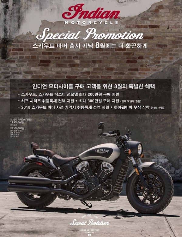 현재 스카우트 바버는 10대 한정으로 판매하며 사전예약 구매 고객을 대상으로 취·등록세 전액 지원과 하이웨이바 무상장착 프로모션을 진행한다.