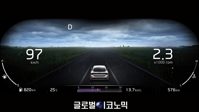 주행 모드(스마트, 에코, 컴포트, 스포트, 커스텀)에 따라 동승석 대시보드와 도어 트림의 그래픽 바 컬러가 변경되는 '앰비언트 라이트'는 미래지향적인 느낌이 들었다.
