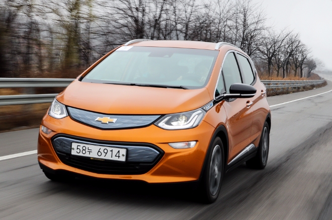 한국지엠 쉐보레 볼트 EV가 도로 위를 질주하고 있다.이미지 확대보기