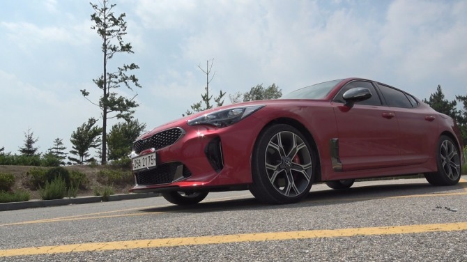 시승차는 '스팅어 3.3 GT' 모델이다. 최상급 성능으로 365마력에 최대토크 52.0kg.m다. 자동 8단 변속기다.
