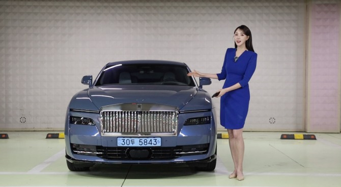 이미지 확대보기나연진 앵커가 롤스로이스 최초 순수전기차인 '스펙터(Spectre)' 차량 리뷰를 진행하고 있다. 사진=이병주 PD