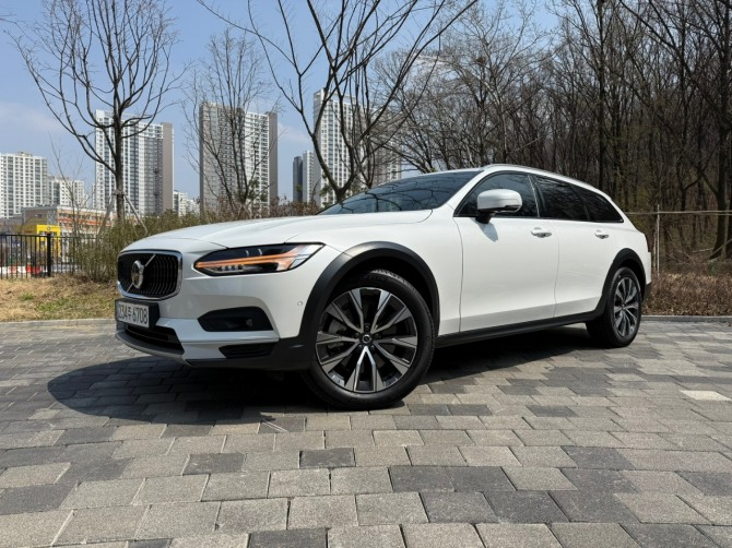 전면부의 시그니처 ‘토르의 망치’ LED 헤드램프와 수직형 그릴은 한눈에 볼보임을 알린다. 일반 V90보다 약간 높은 차체는 SUV와 왜건의 경계선에 위치한 존재감을 드러낸다. 측면 실루엣은 유려하면서도 견고하고 세련됐다. 21인치 휠은 안정감 있는 주행감을 예고한다.