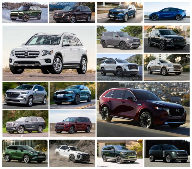 13일 업계에 따르면 자동차 시장은 현재 대형 차들이 주류를 이루고 있다. 이에 한 자동차 전문 외신은 3열이 있는 SUV들이 시중에 얼마나 많은 지를 살펴보고 소개했다. 여기에는 미국에서 대체로 인기가 있는 모델만 52종에 이른다. 이중 절반 이상인 28종이 국내에서도 구매할 수 있는 차들이다.